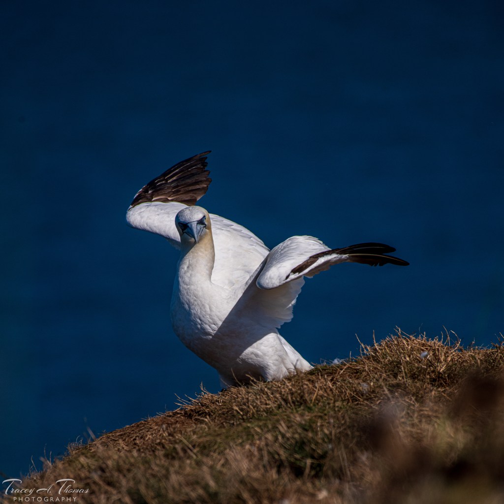 We were camped just down the coast from the main RSPB site and were able to walk in from the site. Nothing quite prepares you for the noise and the smell as you approach the Gannet colonies, but it is a fantastic place to visit.